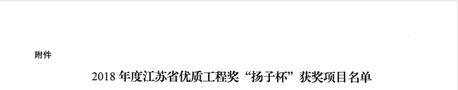 The housing and urban-rural construction department of Jiangsu province, in accordance with the Selection Method of Jiangsu Quality Engineering Award "Yangtze Cup" and the Notice of Organizing and Launching the Declaration of "Yangtze Cup" of Jiangsu Quality Engineering Award in 2018, considered carefully and publicized wothout objection that "North Section of Suzhou Central Expressway" which our company participated in won "Yangtze Cup" of Jiangsu Quality Engineering Award in 2018.
